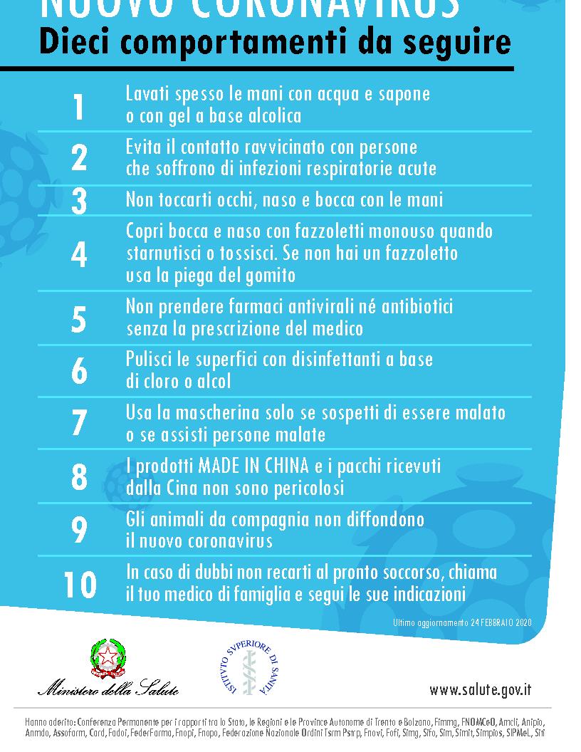 Nuovo coronavirus - Dieci comportamenti da seguire ...